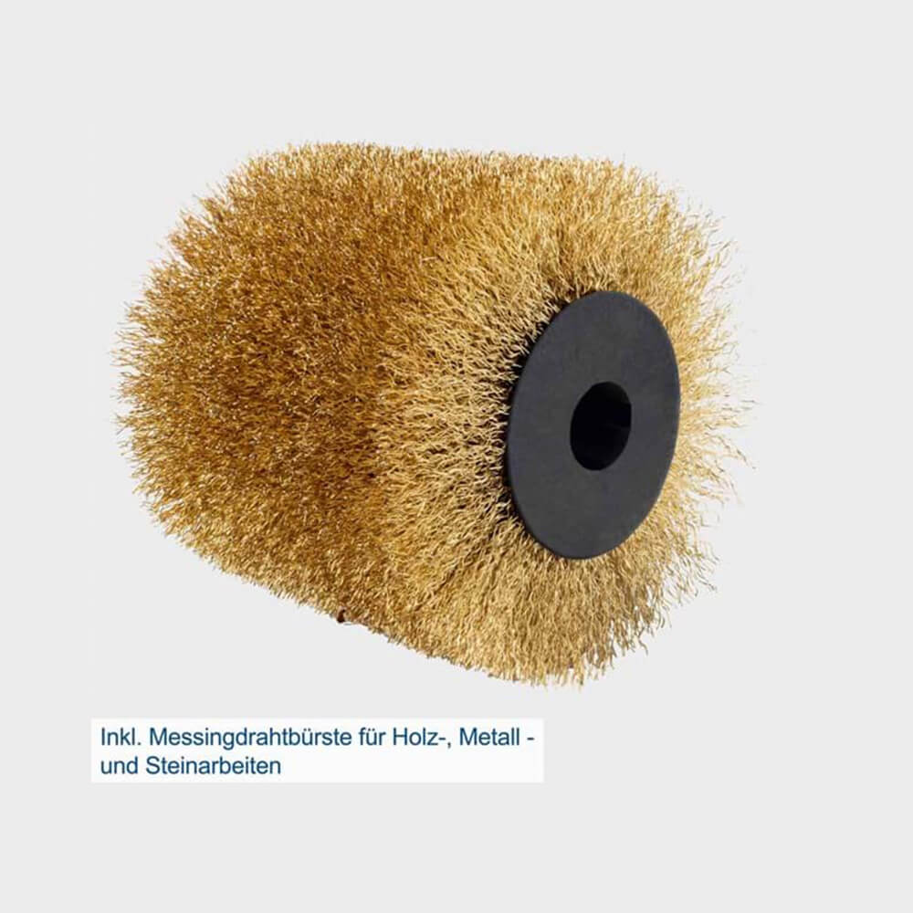 Tvö vinnuvistfræðileg handföng tryggja góða stjórn og þægindi, jafnvel við lengri notkun. Vélin er nett (460 × 205 × 140 mm) og hentar vel í þröng rými. Innbyggð tenging fyrir ryksog heldur vinnusvæði hreinu. Með fylgir messingvírbursti (100 mm breidd, Ø 120 mm), auk möguleika á öðrum burstum sem aukabúnaði.