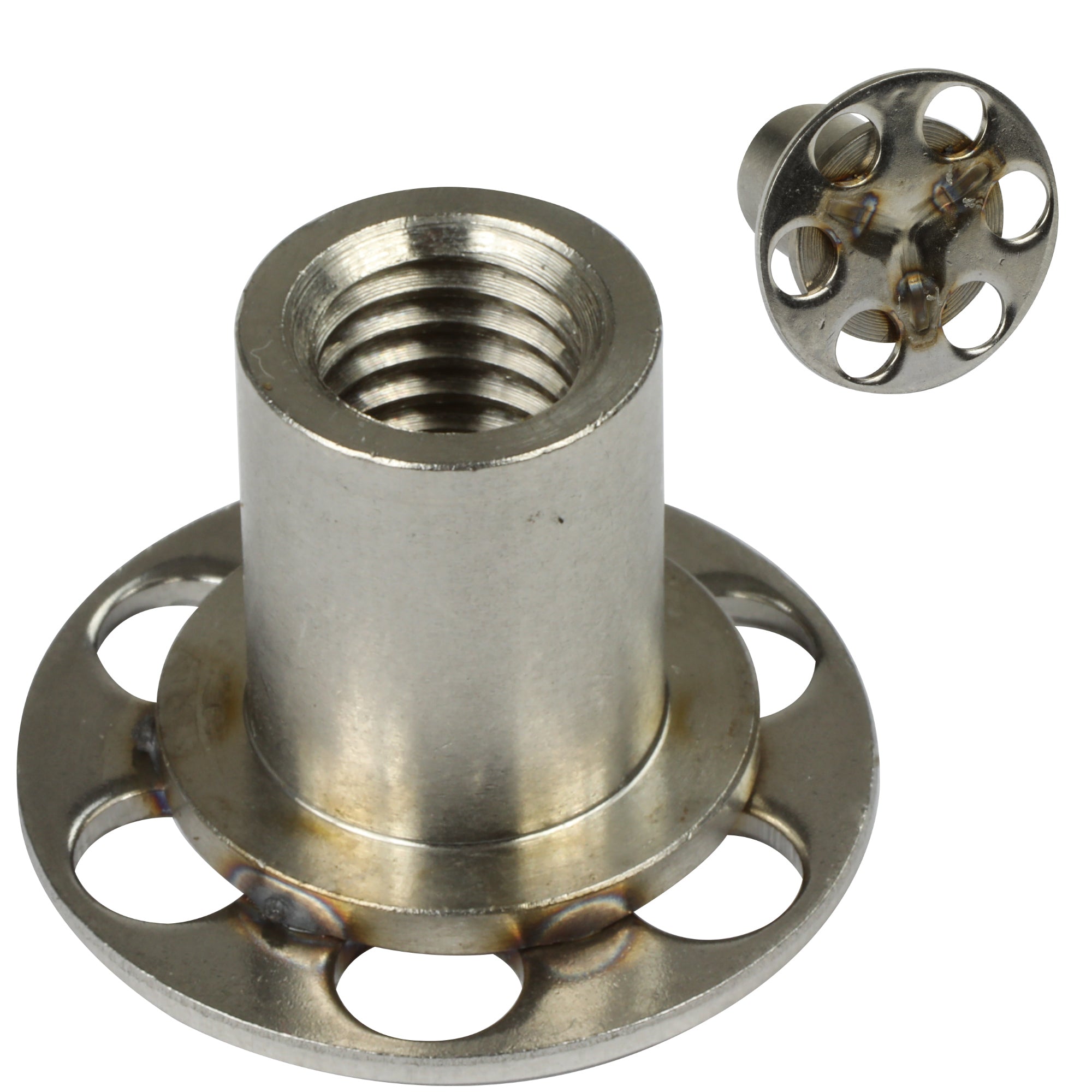 Innfeld ró M10 A4 – með botni og 20 mm flansi, ryðfrítt 316 stál fyrir koltrefja- og glertrefja samsetningu.