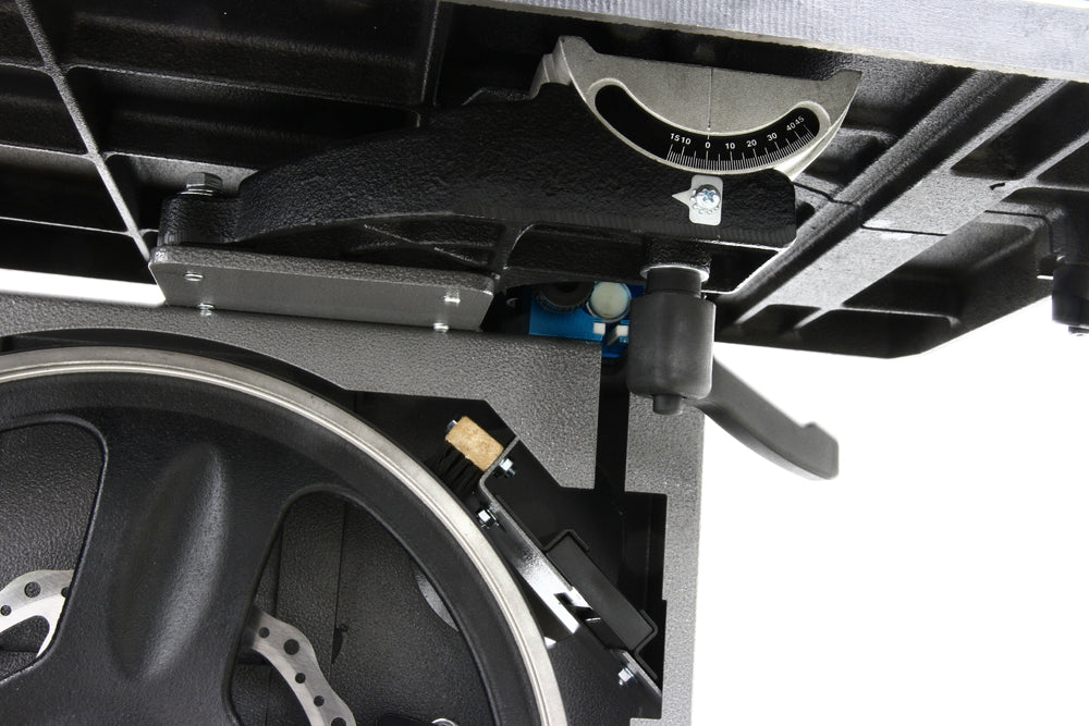 Vinnsluborð er vel planað og slétt, hægt er að halla því upp um 45° og niður um 7°