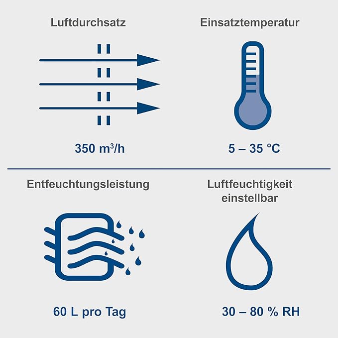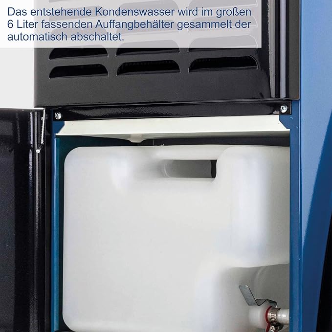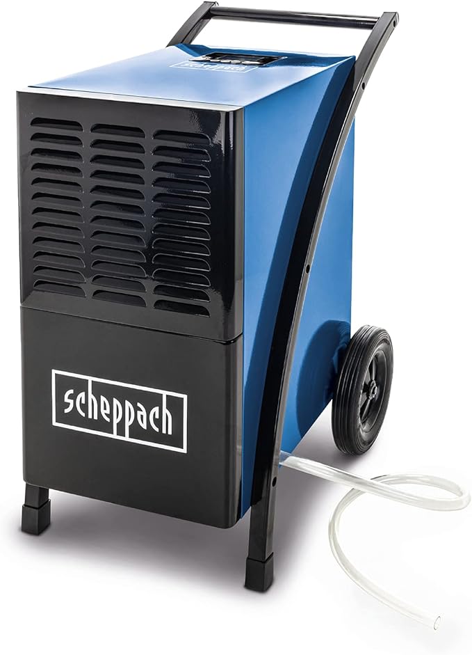 Scheppach rakaskilja með 60 L daglega rakamökkun fyrir rými upp í 60–80 m². Vélin vinnur sjálfkrafa og heldur lofti þurru og hreinu – fullkomið til að koma í veg fyrir raka- og mygluvandamál í kjöllurum, geymslum eða nýlegum byggingum. Innbyggður sjóður safnar vatni sem þarf aðeins að tæma reglulega, og hjól auðvelda flutning