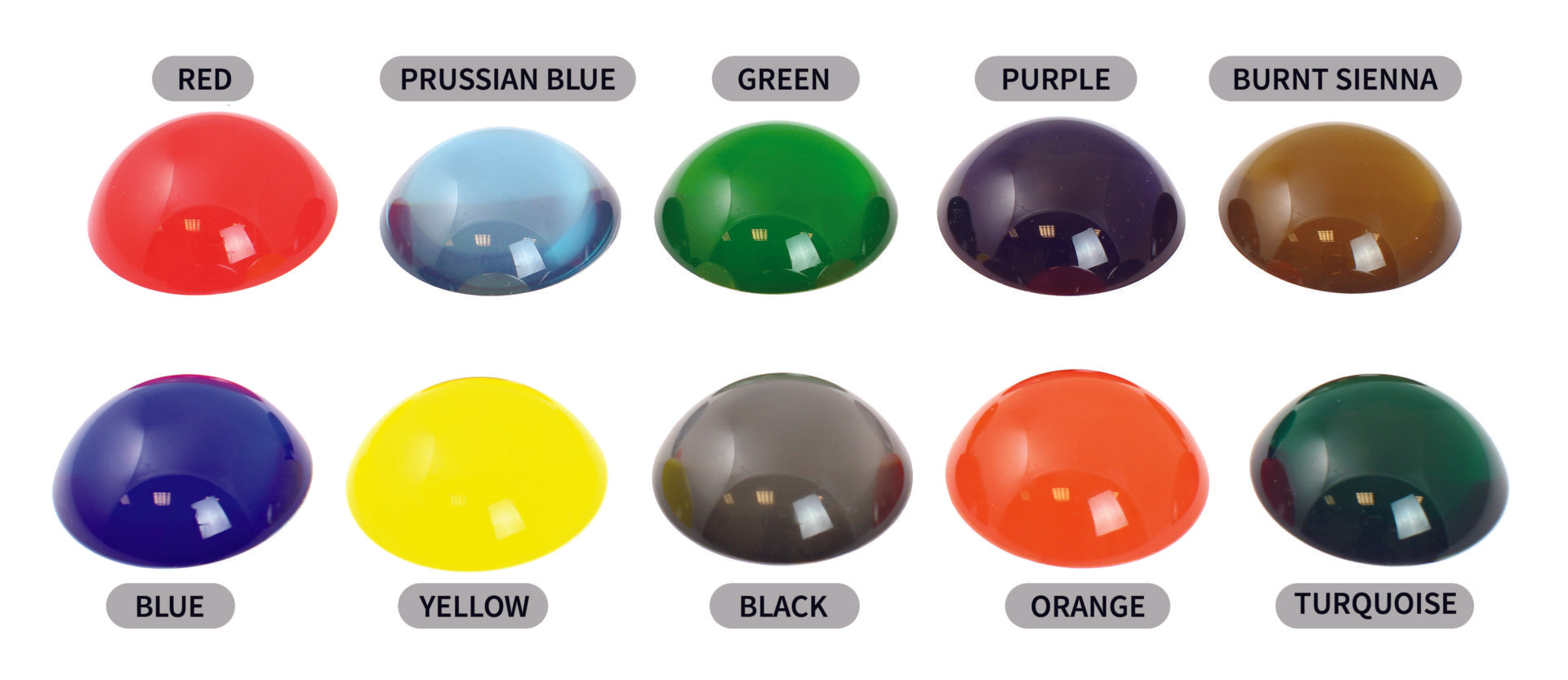 Resin litasett – gagnsæir litir (10 stk) er fjölbreytt litasett með 10 gagnsæjum litarefnum sem eru sérstaklega hönnuð til notkunar í resin. Litirnir gefa skýran og jafnan lit án þess að tapa gegnsæi, sem gerir þá hentuga fyrir verkefni þar sem ljós, dýpt og lagaskipting skipta máli.