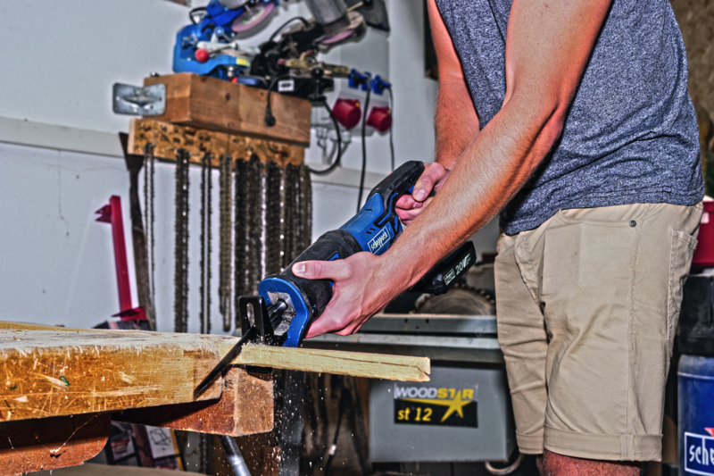 Nett 18 V sverðsög frá Scheppach í 20V Pro seríunni, tekur ekki mikið pláss.