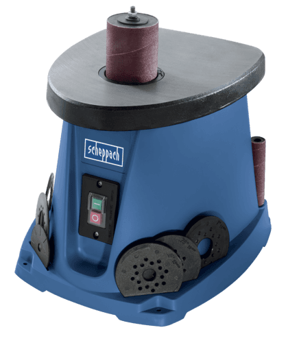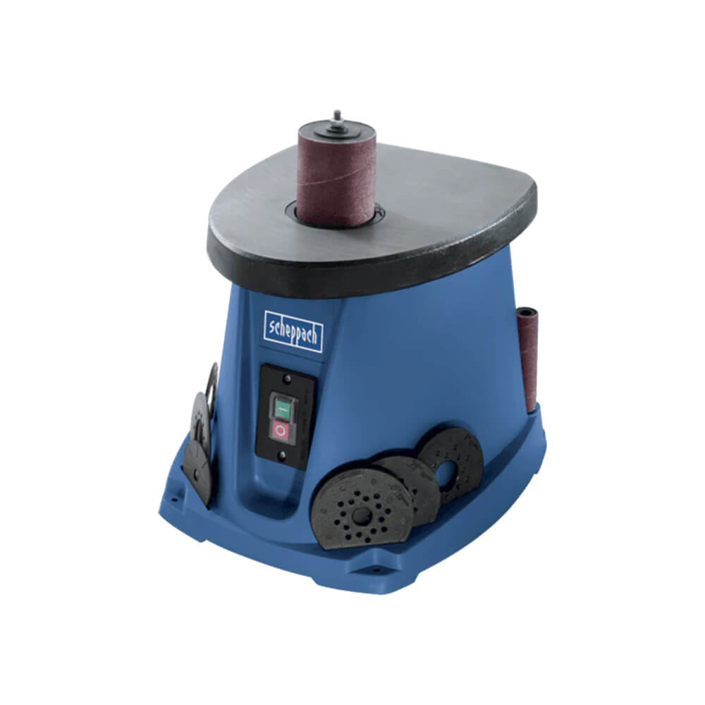 Scheppach OSM100 er nákvæm 450 W spindilpússvél með sveifluhreyfingu og mörgum hulsum, fullkomin fyrir kantpússun og frágang í trésmíði og verkstæði.