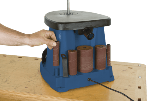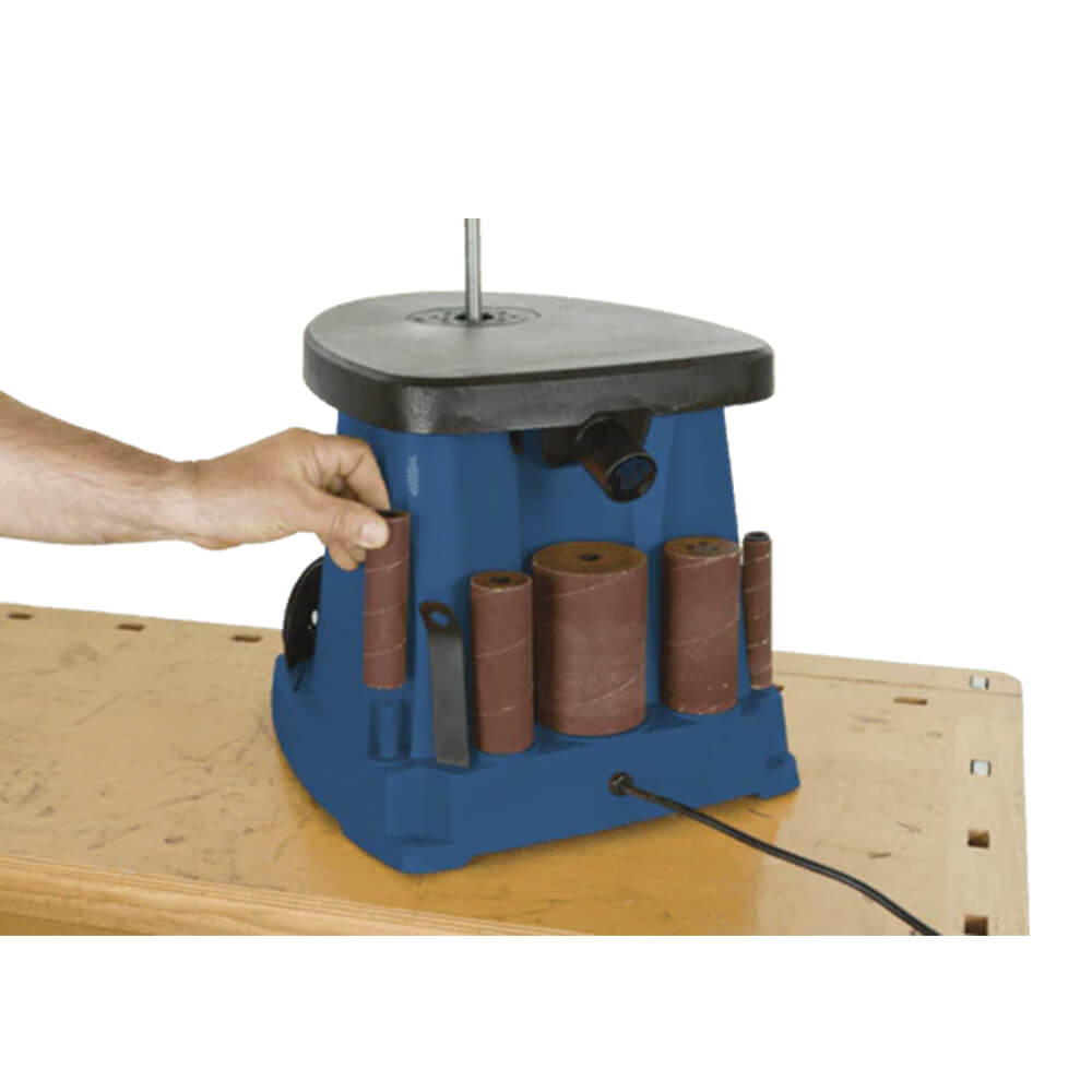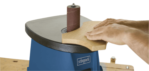 Scheppach OSM100 er öflug og nákvæm spindilpússvél sem hentar vel til kantpússunar og frágangs á bognum og beinum flötum. Vélin er búin sveifluhreyfingu upp og niður sem tryggir jafna slípun og lengri endingu á slíphylkjum. Stórt vinnuborð veitir góða stuðning og stöðugleika við vinnu.