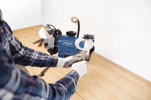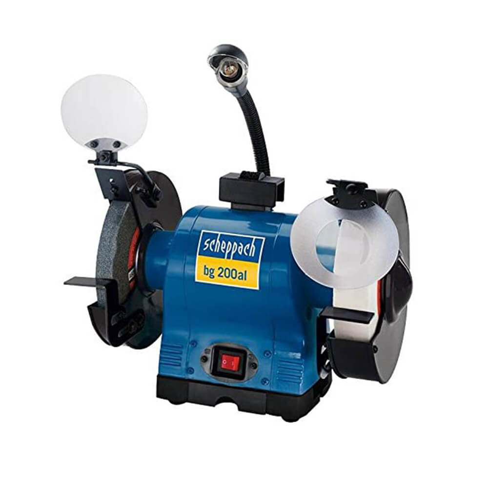 Scheppach BG200AL er öflugur 550 W borðsmergill með 200 mm slíphjólum, fullkominn fyrir slípun, brýningu og málmvinnu í verkstæði.