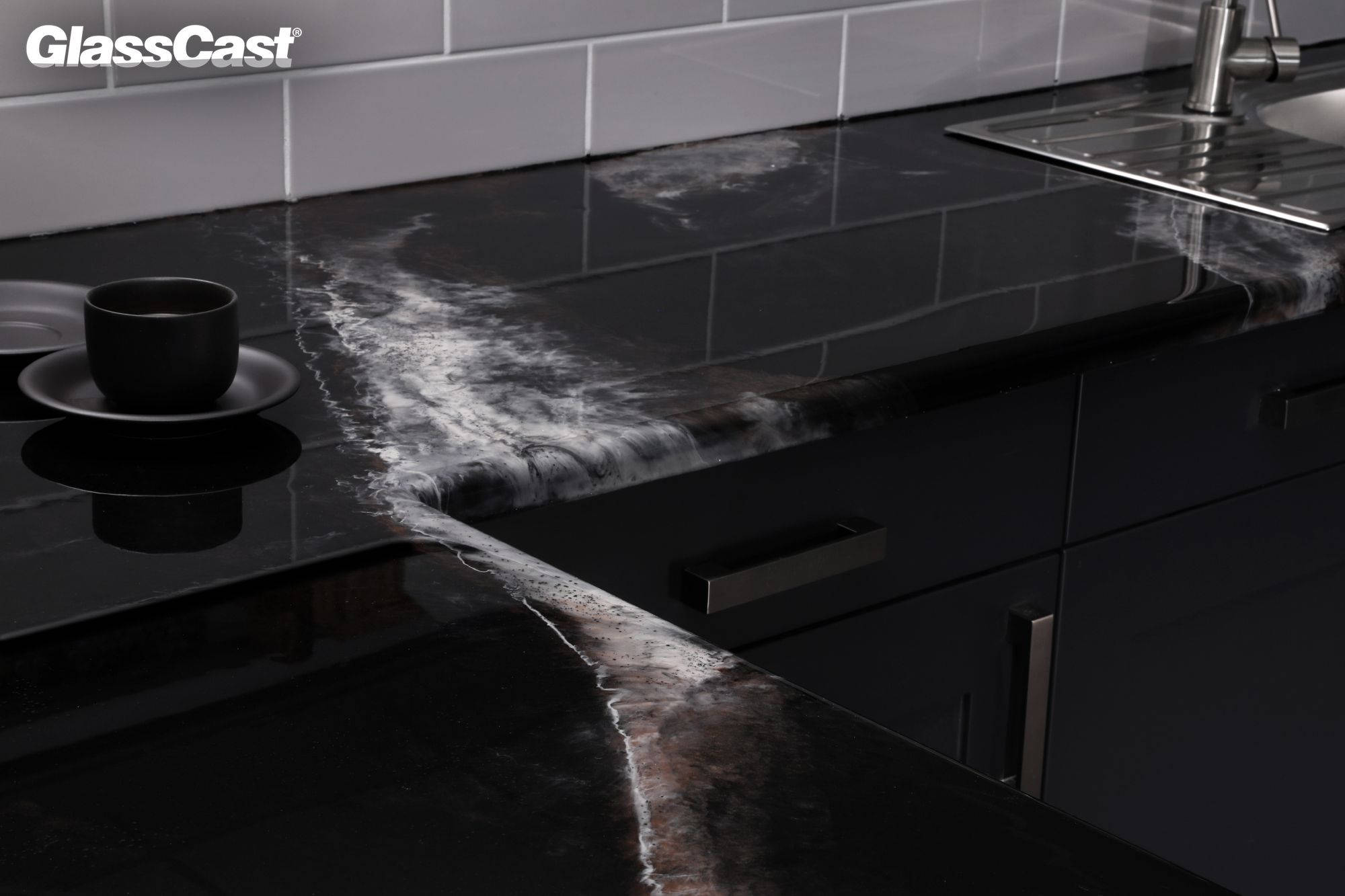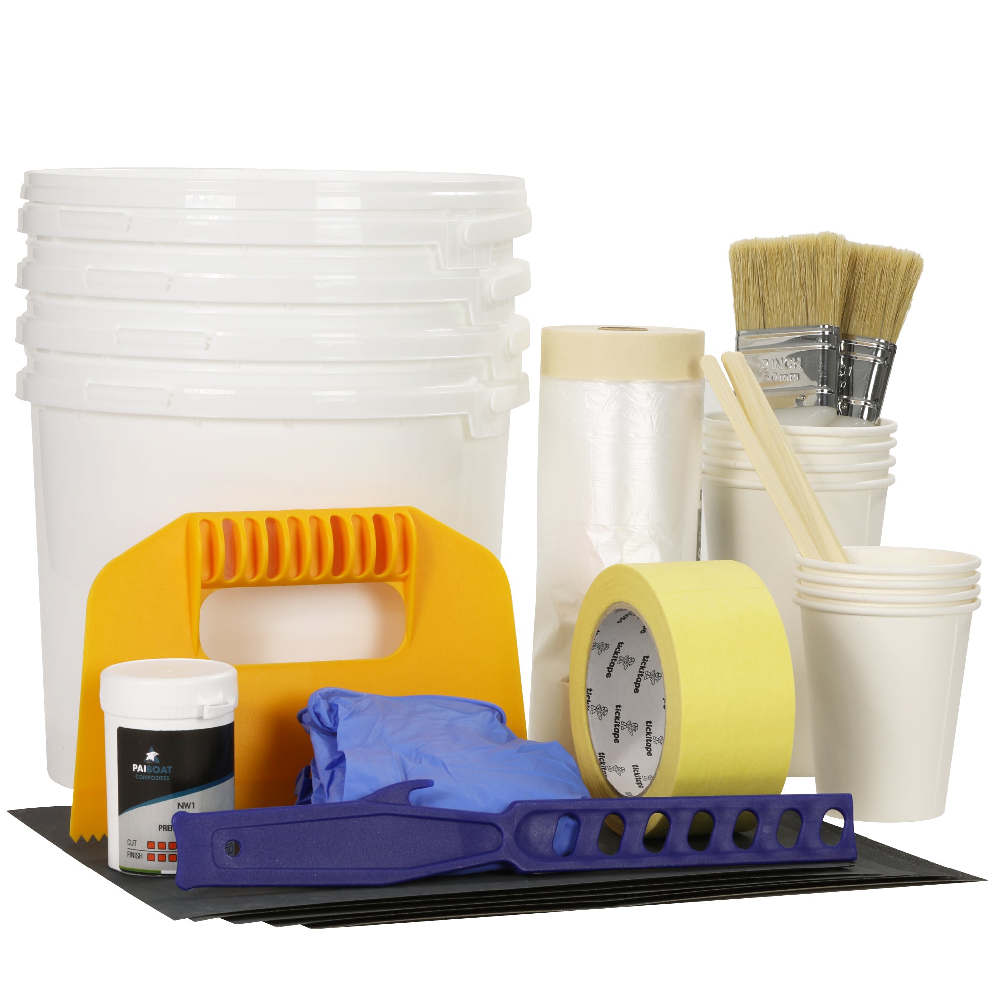 Verkfærasett fyrir borðplöturesin 2 m² – fullbúið sett með verkfærum fyrir blöndun, úthellingu og frágang á resin-borðplötum.