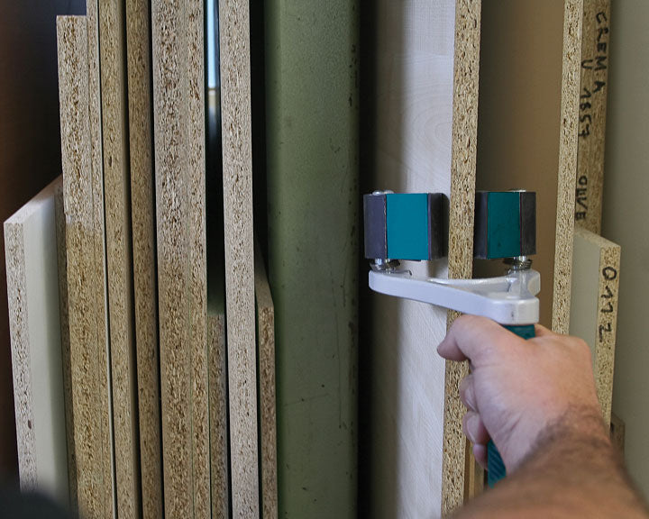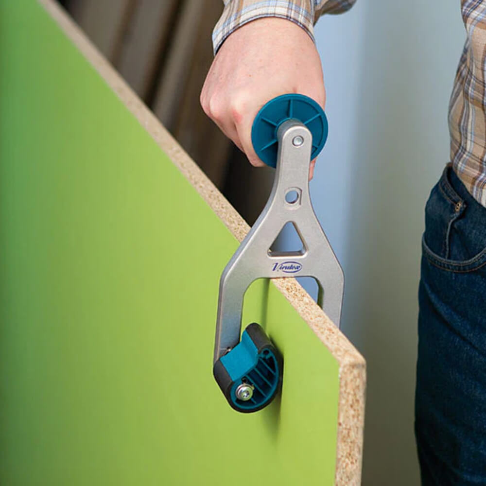 Þrennt í einu, heldur, ber og lyftir plötum. Þægileg hönnun sem auðveldar burð á viðar-, málm- og PVC-plötum allt að 46 mm þykkt. PT81U er úr sterku áli, með hálkuvörðum gripfótum og burðarhandfangi, og þolir allt að 70 kg á hvert handfang.