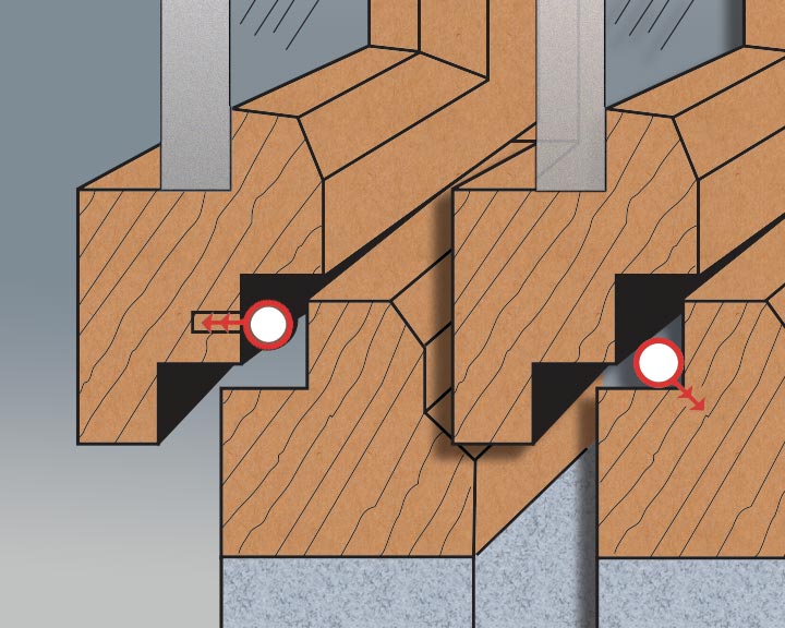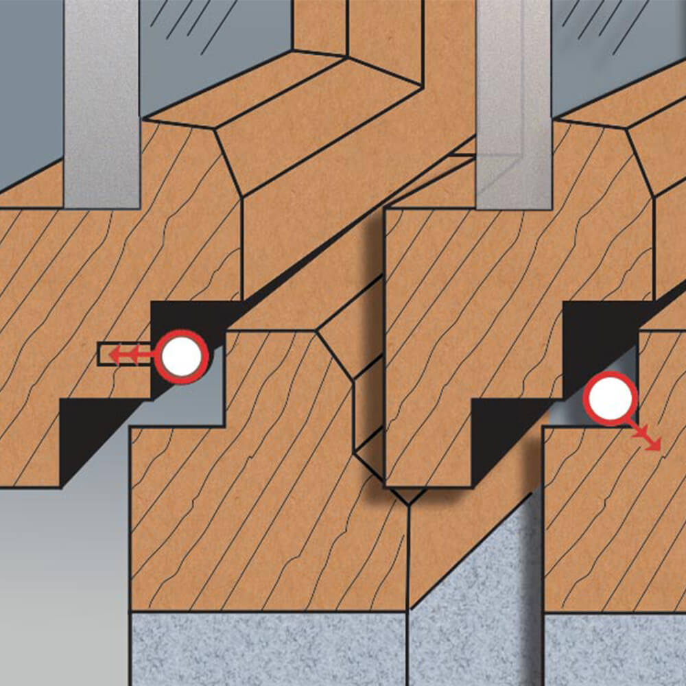 Með Virutex RA17VB verkfræsaranum hægt að fræsa alveg upp í kverkar og fá óslittna fræsningu fyrir þéttikanntinn allann hringinn.